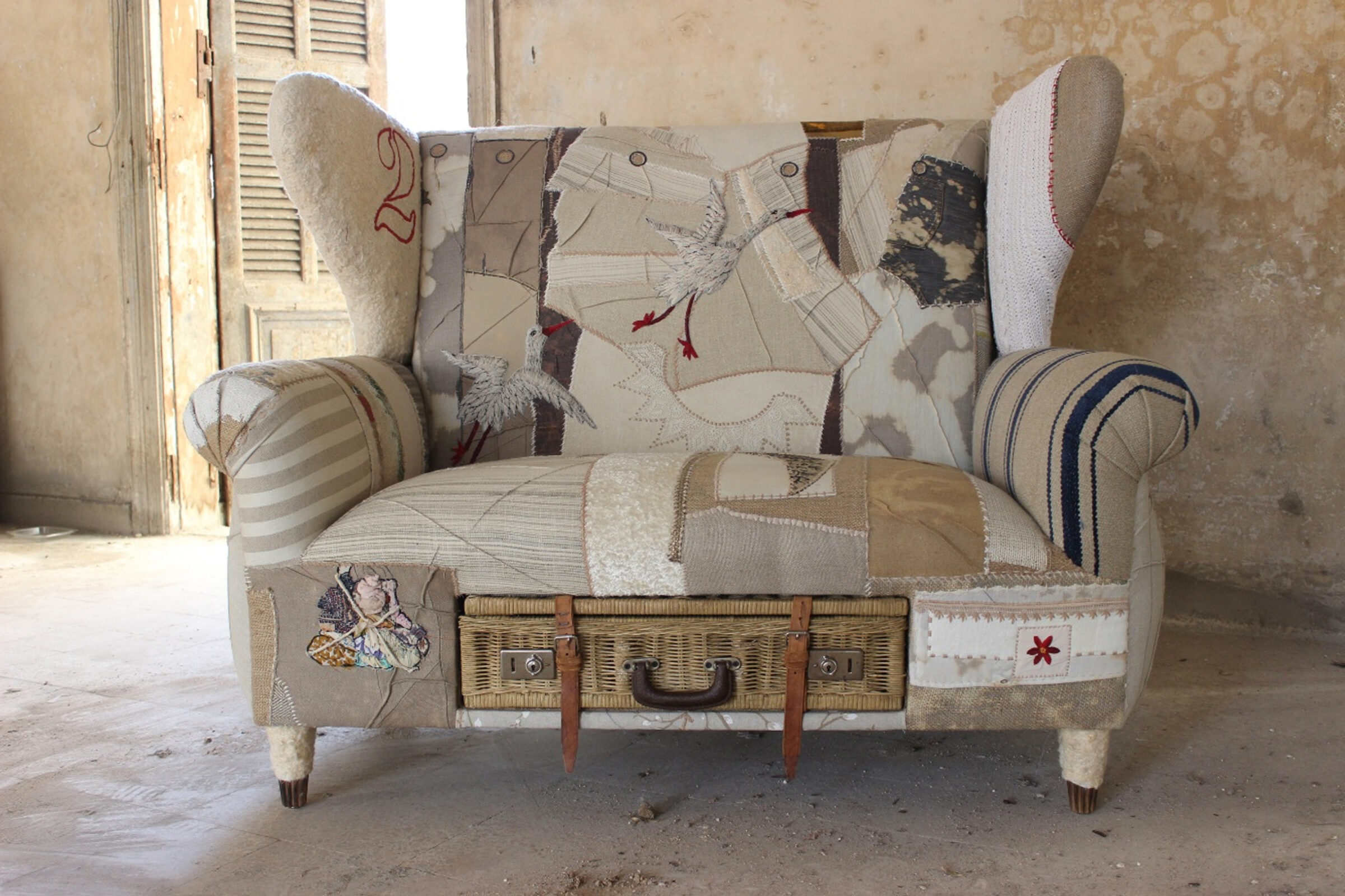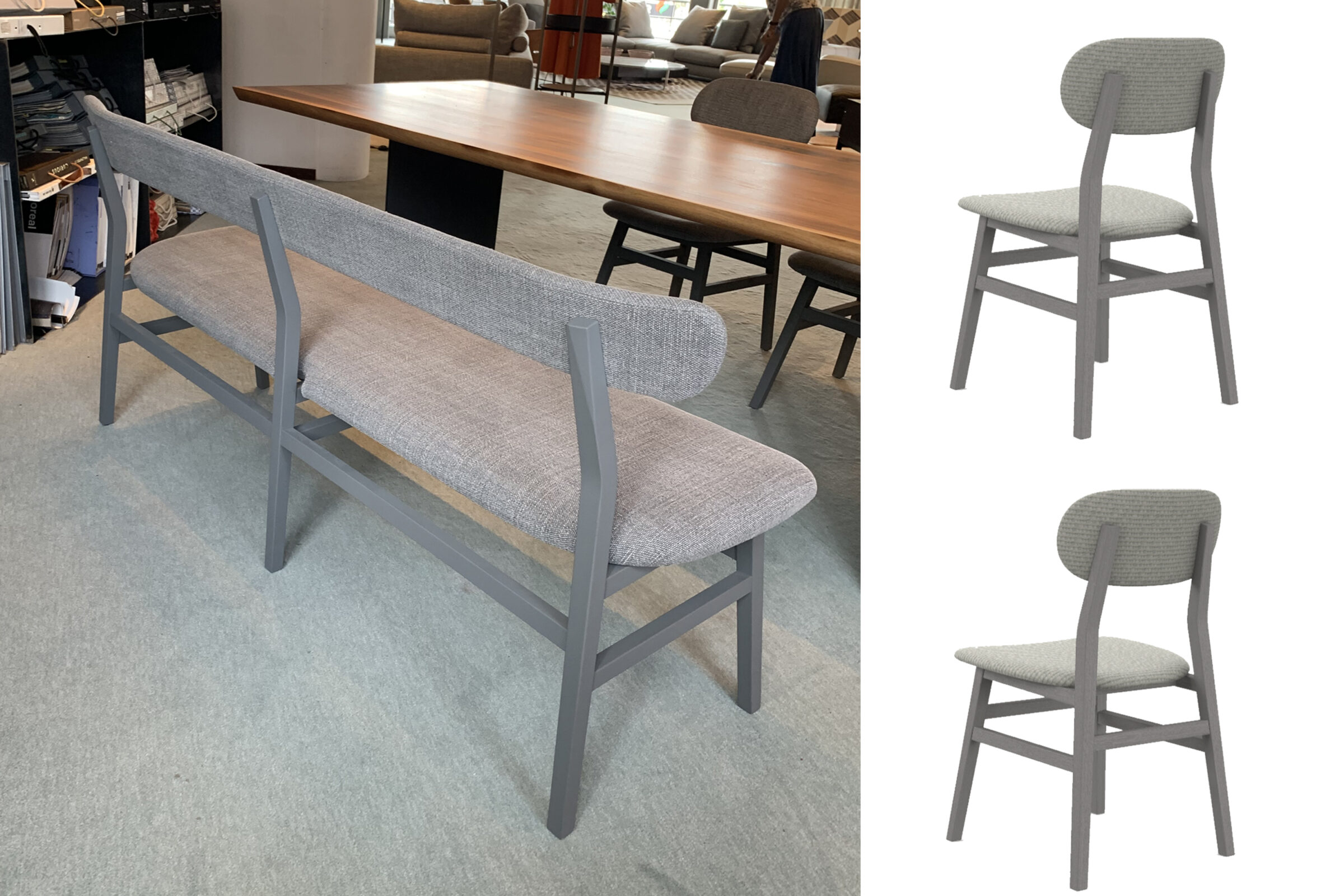 Struttura grigia – rivestimento in tessuto Iuta Grigio – panca 170 x 50 cm – sedia 46 x 50 cm