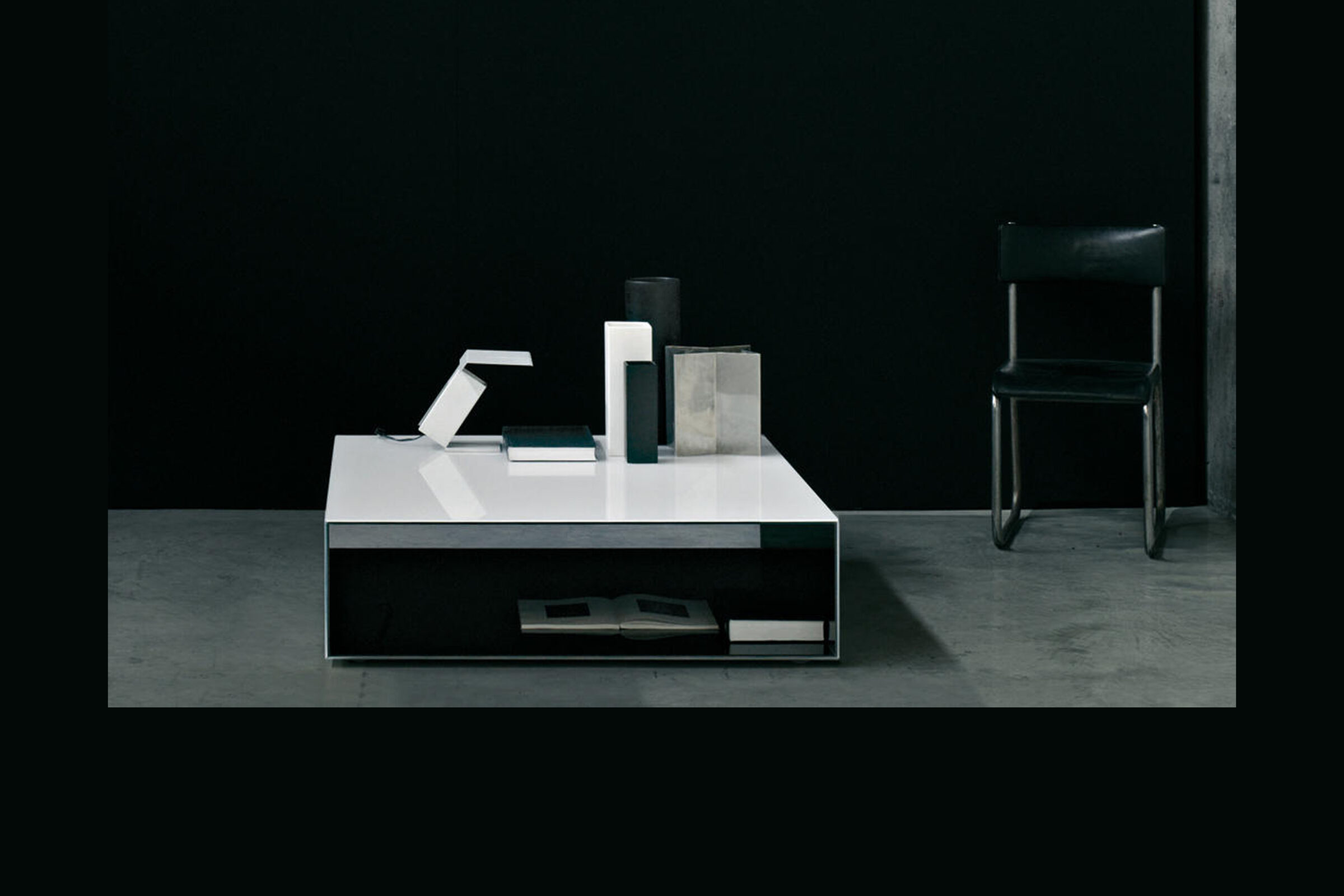 esterno in vetro lucido bianco – interno in vetro lucido nero – 110 x 110 x H 32 cm